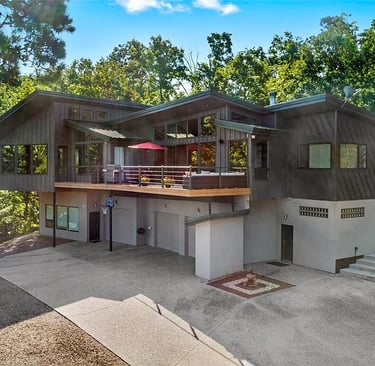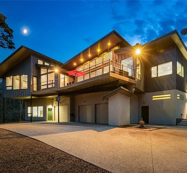 Nestled in a secluded wooded setting on Beaver Lake, this contemporary lakefront home offers an exceptional blend of luxury, nature & modern living. A separate apartment on the lower level adds flexibility for short-term rentals, guests or a private office. Accessible by elevator, the main level features expansive windows with wooded/lake views, vaulted ceilings, fireplace & tigerwood floors. The gourmet kitchen is equipped with custom cabinets, commercial vented gas range & double ovens. Two ensuite bedrooms are also found on this level. The lower level also includes extra storage rooms & a 3-car garage with a heated workshop. Outdoor living features include a deck with gas grill hookups, paved path leading to the lake & an enchanting trail that takes you to a cold spring waterfall on the property. Also: radiant heating, solar panels, a whole house regenerator and more. Ask for the full List of Features and the option to purchase a boat & lift that will come with a slip transfer at Lost Bridge Marina.